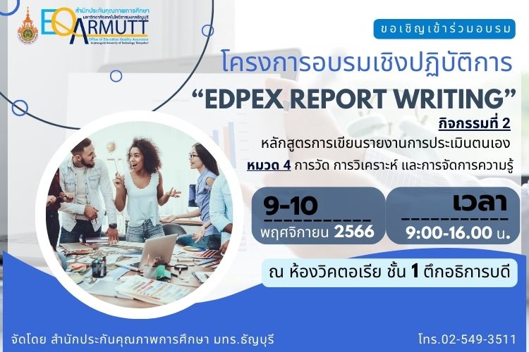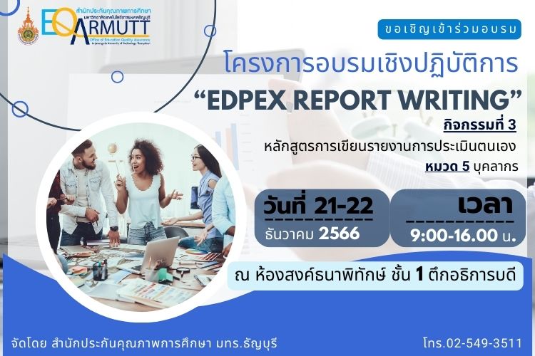 ธันวาคม 22, 2023Published by suphak marujkla on ธันวาคม 22, 2023Categories EdPEx ภาพกิจกรรมโครงการอบรมเชิงปฏิบัติการ “EdPEx Report Writing” วันที่ 21-22 ธ.ค.66สำนักประกันคุณภาพการศึกษา … อ่านเพิ่มเติม โครงการอบรมเชิงปฏิบัติการ “EdPEx Report Writing” วันที่ 21-22 ธ.ค.66