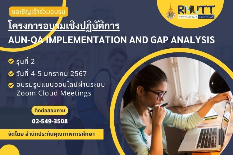 พฤศจิกายน 27, 2023Published by suphak marujkla on พฤศจิกายน 27, 2023Categories ข่าวประชาสัมพันธ์โครงการอบรมเชิงปฏิบัติการ AUN-QA Implementation and Gap Analysis (รุ่นที่ 1) วันที่ 29-30 พ.ย. 66 สำนักประกันคุณภาพกา… อ่านเพิ่มเติม โครงการอบรมเชิงปฏิบัติการ AUN-QA Implementation and Gap Analysis (รุ่นที่ 1) วันที่ 29-30 พ.ย. 66