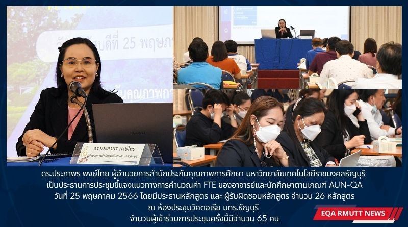 พฤษภาคม 26, 2023Published by suphak marujkla on พฤษภาคม 26, 2023Categories ประชุม ภาพกิจกรรมประชุมชี้แจงแนวทางการคำนวณค่า FTE ของอาจารย์และนักศึกษาตามเกณฑ์ AUN-QAดร.ประภาพร พงษ์ไทย ผู้อำนว… อ่านเพิ่มเติม ประชุมชี้แจงแนวทางการคำนวณค่า FTE ของอาจารย์และนักศึกษาตามเกณฑ์ AUN-QA