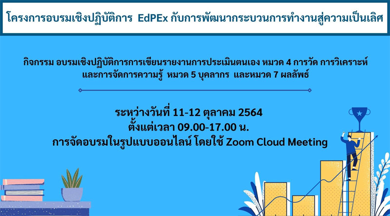 ตุลาคม 12, 2021Published by suphak marujkla on ตุลาคม 12, 2021Categories EdPEx ข่าวประชาสัมพันธ์ ภาพกิจกรรมภาพกิจกรรมโครงการอบรมเชิงปฏิบัติการการเขียนรายงานการประเมินตนเอง หมวด 4 หมวด 5 และ หมวด 7รศ.ดร.สมหมาย ผิวสะอาด อธิก… อ่านเพิ่มเติม ภาพกิจกรรมโครงการอบรมเชิงปฏิบัติการการเขียนรายงานการประเมินตนเอง หมวด 4 หมวด 5 และ หมวด 7