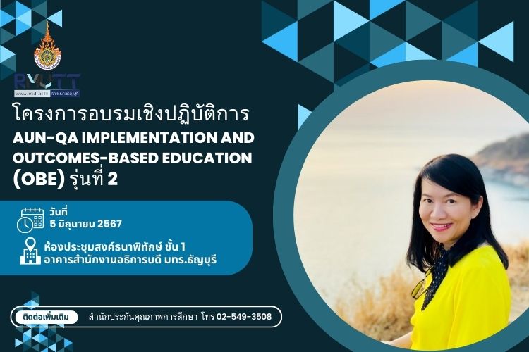 มิถุนายน 6, 2024Published by suphak marujkla on มิถุนายน 6, 2024Categories AUN-QA ภาพกิจกรรมโครงการอบรมเชิงปฏิบัติการ AUN-QA Implementation and Outcomes-Based Education (OBE)รองศาสตราจารย์ ดร.สมหมาย ผ… อ่านเพิ่มเติม โครงการอบรมเชิงปฏิบัติการ AUN-QA Implementation and Outcomes-Based Education (OBE)