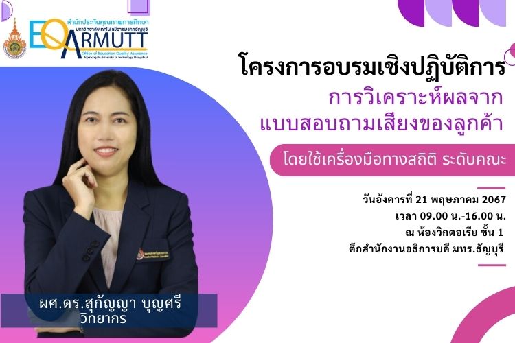 พฤษภาคม 24, 2024Published by suphak marujkla on พฤษภาคม 24, 2024Categories EdPEx ภาพกิจกรรมโครงการอบรมเชิงปฏิบัติการการวิเคราะห์ผลจากแบบสอบถามเสียงของลูกค้า โดยใช้เครื่องมือทางสถิติ ระดับคณะ วันที่ 21 พฤษภาคม 2567ดร.ประภาพร พงษ์ไทย ผู้อำนว… อ่านเพิ่มเติม โครงการอบรมเชิงปฏิบัติการการวิเคราะห์ผลจากแบบสอบถามเสียงของลูกค้า โดยใช้เครื่องมือทางสถิติ ระดับคณะ วันที่ 21 พฤษภาคม 2567