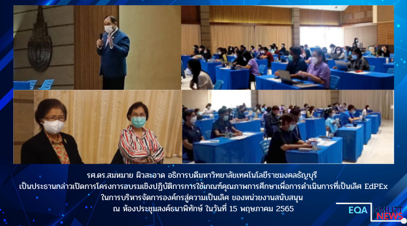 พฤษภาคม 17, 2022Published by suphak marujkla on พฤษภาคม 17, 2022Categories EdPEx ภาพกิจกรรมโครงการอบรมเชิงปฏิบัติการการใช้เกณฑ์คุณภาพการศึกษาเพื่อการดำเนินการที่เป็นเลิศ EdPEx ในการบริหารจัดการองค์กรสู่ความเป็นเลิศ ของหน่วยงานสนับสนุนรศ.ดร.สมหมาย ผิวสะอาด อธิก… อ่านเพิ่มเติม โครงการอบรมเชิงปฏิบัติการการใช้เกณฑ์คุณภาพการศึกษาเพื่อการดำเนินการที่เป็นเลิศ EdPEx ในการบริหารจัดการองค์กรสู่ความเป็นเลิศ ของหน่วยงานสนับสนุน