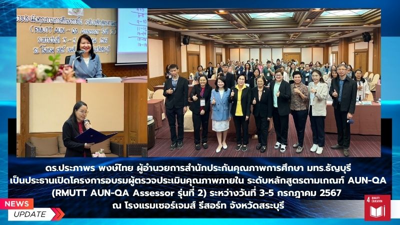 กรกฎาคม 4, 2024Published by suphak marujkla on กรกฎาคม 4, 2024Categories AUN-QA ภาพกิจกรรมสำนักประกันคุณภาพการศึกษา มทร.ธัญบุรี ยกระดับมาตรฐานคุณภาพการศึกษา จัดอบรมผู้ตรวจประเมิน AUN-QA รุ่นที่ 2 สำนักประกัน… อ่านเพิ่มเติม สำนักประกันคุณภาพการศึกษา มทร.ธัญบุรี ยกระดับมาตรฐานคุณภาพการศึกษา จัดอบรมผู้ตรวจประเมิน AUN-QA รุ่นที่ 2