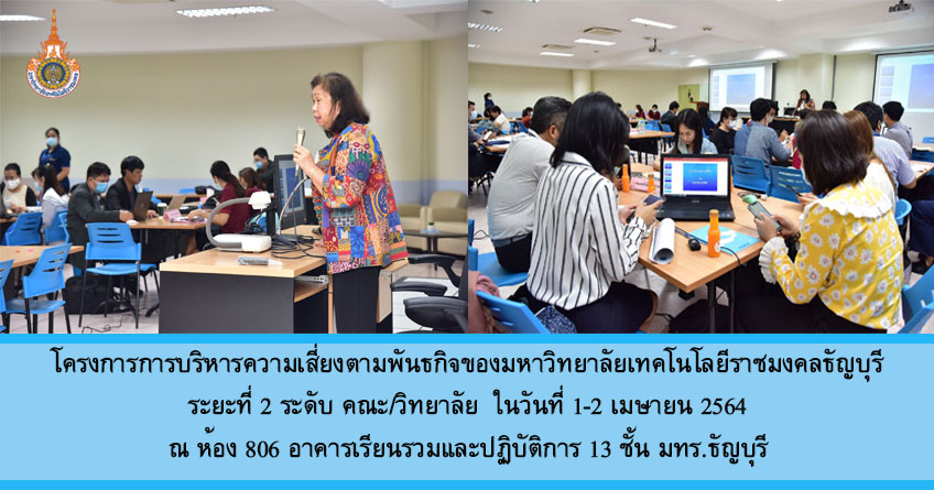 มีนาคม 29, 2021Published by suphak marujkla on มีนาคม 29, 2021Categories บริหารความเสี่ยง ภาพกิจกรรมโครงการบริหารความเสี่ยงตามพันธกิจของมหาวิทยาลัยเทคโนโลยีราชมงคลธัญบุรี ระยะที่ 1 การสร้างความตระหนักด้านการบริหารความเสี่ยง : เปลี่ยนวิกฤตเป็นโอกาสผศ.พงศ์พิชญ์ ต่วนภูษา รองอ… อ่านเพิ่มเติม โครงการบริหารความเสี่ยงตามพันธกิจของมหาวิทยาลัยเทคโนโลยีราชมงคลธัญบุรี ระยะที่ 1 การสร้างความตระหนักด้านการบริหารความเสี่ยง : เปลี่ยนวิกฤตเป็นโอกาส