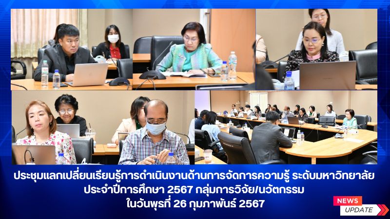 มีนาคม 24, 2025Published by suphak marujkla on มีนาคม 24, 2025Categories การจัดการความรู้ ประชุม ภาพกิจกรรมประชุมคณะกรรมการแลกเปลี่ยนเรียนรู้ในการจัดการความรู้ ระดับมหาวิทยาลัย ประจำปีการศึกษา 2567 ครั้งที่ 2/2568 (กลุ่มการวิจัย/นวัตกรรม : เทคนิคการสร้างผลงานวิจัย/นวัตกรรม) วันที่ 21 มี.ค.68รศ.ดร.อมร ไชยสัตย์ รองผู้อ… อ่านเพิ่มเติม ประชุมคณะกรรมการแลกเปลี่ยนเรียนรู้ในการจัดการความรู้ ระดับมหาวิทยาลัย ประจำปีการศึกษา 2567 ครั้งที่ 2/2568 (กลุ่มการวิจัย/นวัตกรรม : เทคนิคการสร้างผลงานวิจัย/นวัตกรรม) วันที่ 21 มี.ค.68