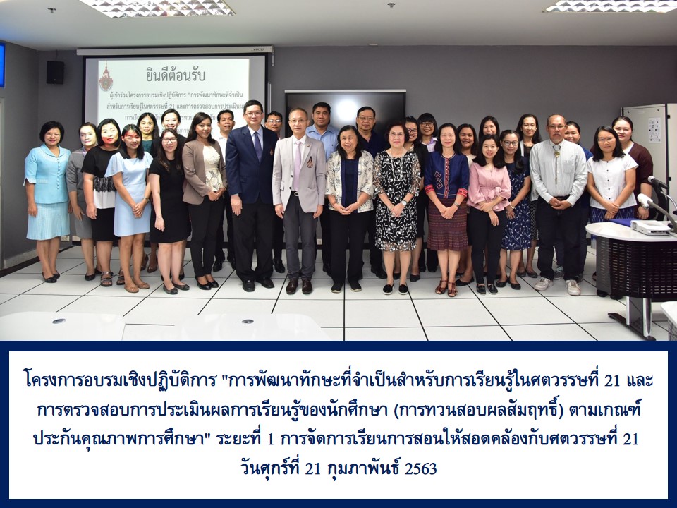 กุมภาพันธ์ 21, 2020Published by Mookkarin on กุมภาพันธ์ 21, 2020Categories ข่าวประชาสัมพันธ์ ภาพกิจกรรมโครงการอบรมเชิงปฏิบัติการ “การพัฒนาทักษะที่จำเป็นสำหรับการเรียนรู้ในศตวรรษที่ 21 และการตรวจสอบการประเมินผลการเรียนรู้ของนักศึกษา (การทวนสอบผลสัมฤทธิ์) ตามเกณฑ์ประกันคุณภาพการศึกษา” ระยะที่ 1 การจัดการเรียนการสอนให้สอดคล้องกับศตวรรษที่ 21สำนักประกันคุณภาพการศึกษา … อ่านเพิ่มเติม โครงการอบรมเชิงปฏิบัติการ “การพัฒนาทักษะที่จำเป็นสำหรับการเรียนรู้ในศตวรรษที่ 21 และการตรวจสอบการประเมินผลการเรียนรู้ของนักศึกษา (การทวนสอบผลสัมฤทธิ์) ตามเกณฑ์ประกันคุณภาพการศึกษา” ระยะที่ 1 การจัดการเรียนการสอนให้สอดคล้องกับศตวรรษที่ 21