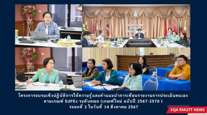 โครงการอบรมเชิงปฏิบัติการให้ความรู้และคำแนะนำการเขียนรายงานการประเมินตนเอง ตามเกณฑ์ EdPEx ระดับคณะ (เกณฑ์ใหม่ ฉบับปี 2567-2570 ) ระยะที่ 2 วันที่ 15-16 ส.ค.67