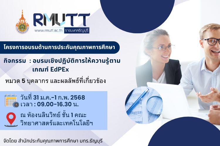 โครงการอบรมด้านการประกันคุณภาพการศึกษา กิจกรรมอบรมเชิงปฏิบัติการ ให้ความรู้ตามเกณฑ์ EdPEx หมวด 5 บุคลากร และผลลัพธ์ที่เกี่ยวข้อง วันที่ 31 ม.ค – 1 ก.พ. 2568