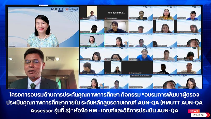 พฤษภาคม 26, 2025รศ.รัตนฤทธิ์ จันทรรังสี ผู้ช่วยอธิการบดีมหาวิทยาลัยเทคโนโลยีราชมงคลธัญบุรี เป็นประธานเปิดโครงการอบรมด้านการประกันคุณภาพการศึกษา กิจกรรม “อบรมการพัฒนาผู้ตรวจประเมินคุณภาพการศึกษาภายใน ระดับหลักสูตรตามเกณฑ์ AUN-QA (RMUTT AUN-QA Assessor รุ่นที่ 3)” หัวข้อ KM : เกณฑ์และวิธีการประเมิน AUN-QA เพื่อให้ผู้เข้าอบรมทบทวนความรู้ ความเข้าใจตามหลักการสำคัญของระบบ AUN-QA และ OBE พร้อมทั้งพัฒนาศักยภาพในการขึ้นทะเบียนเป็นผู้ประเมินคุณภาพการศึกษาภายใน ระดับหลักสูตร ตามเกณฑ์ AUN-QA ของมหาวิทยาลัยฯ และสามารถปฏิบัติหน้าที่เป็นผู้ระเมินฯ โดยมีวิทยากร รศ.ดร.ภกญ.กัญคดา อนุวงศ์ ในวันศุกร์ที่ 23 พ.ค.68 ผ่าน zoom cloud meeting