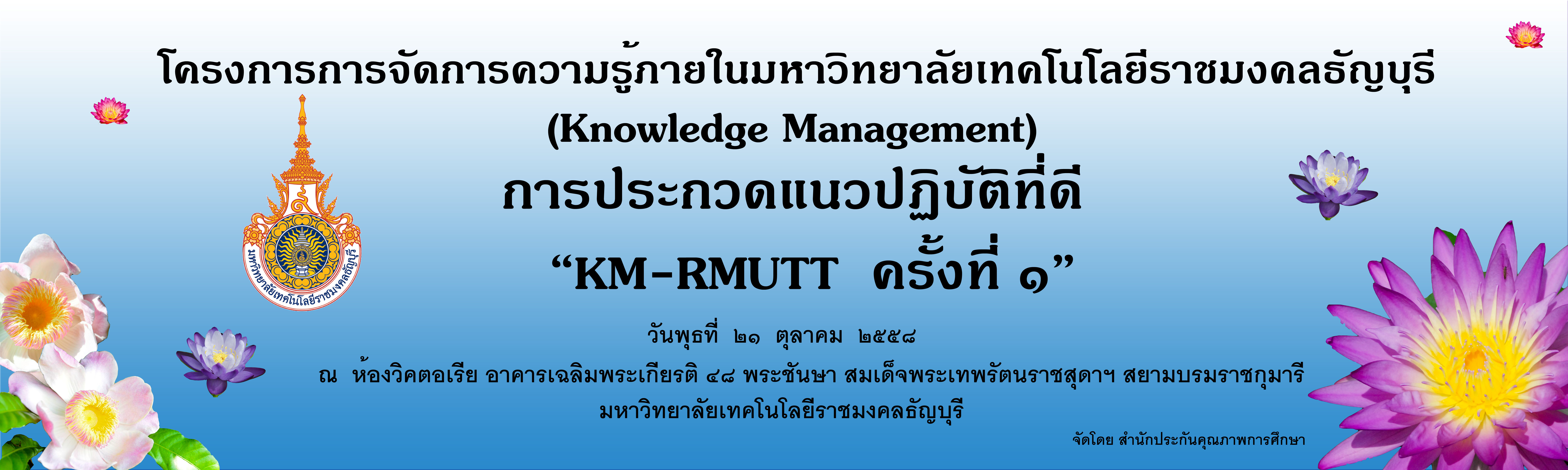 (Knowledge management) : การประกวดแนวปฏิบัติที่ดี “KM-RMUTT ครั้งที่ 1”