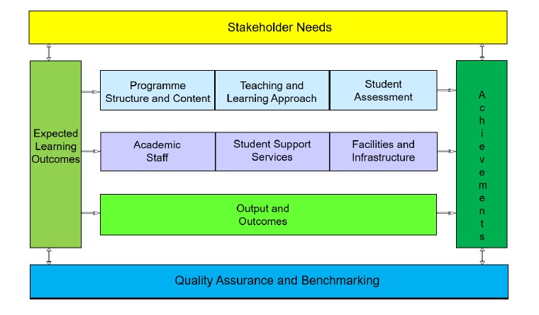 เกณฑ์การประเมินคุณภาพระดับโปรแกรมหรือระดับหลักสูตรการศึกษา ประกอบด้วย เกณฑ์ AUN-QA (Version 4.0) จำนวน 8 ข้อ และในแต่ละเกณฑ์ยังประกอบด้วยเกณฑ์การพิจารณาย่อย ๆ 53 ตัวบ่งชี้ เกณฑ์หลักในการประเมินคุณภาพ มีดังนี้