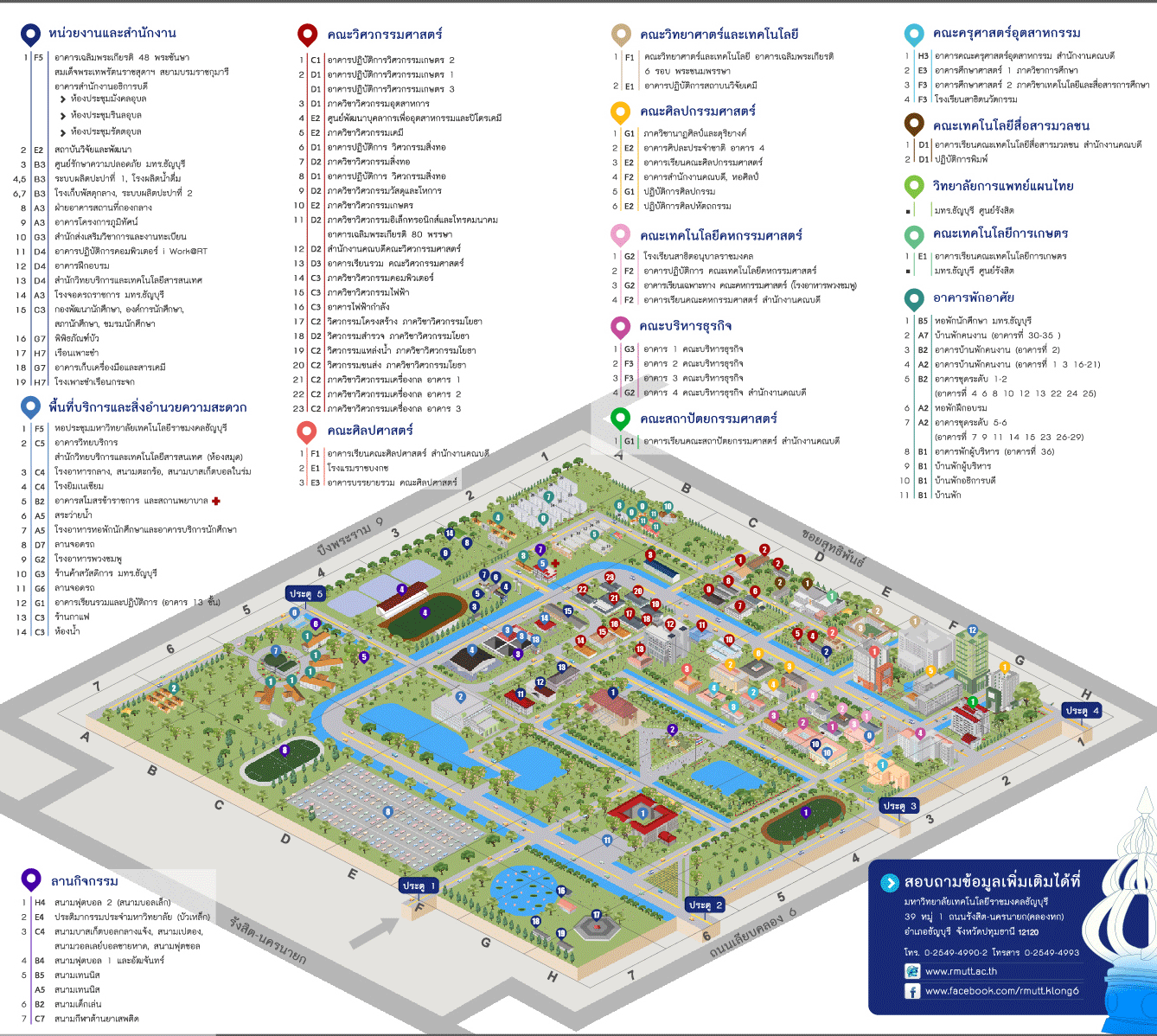ที่อยู่และข้อมูลการติดต่อ มหาวิทยาลัยเทคโนโลยีราชมงคลธัญบุรี (คลองหก)